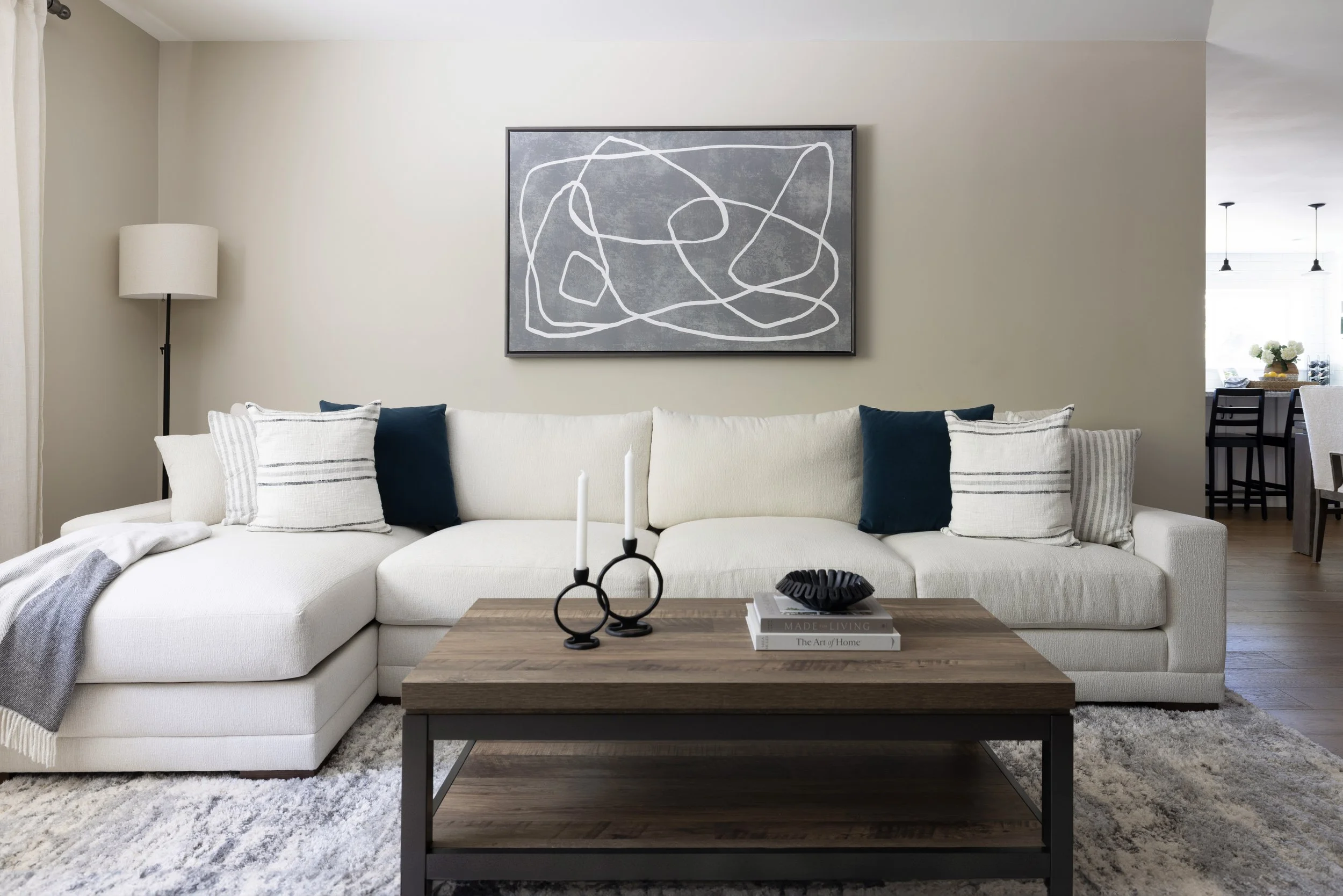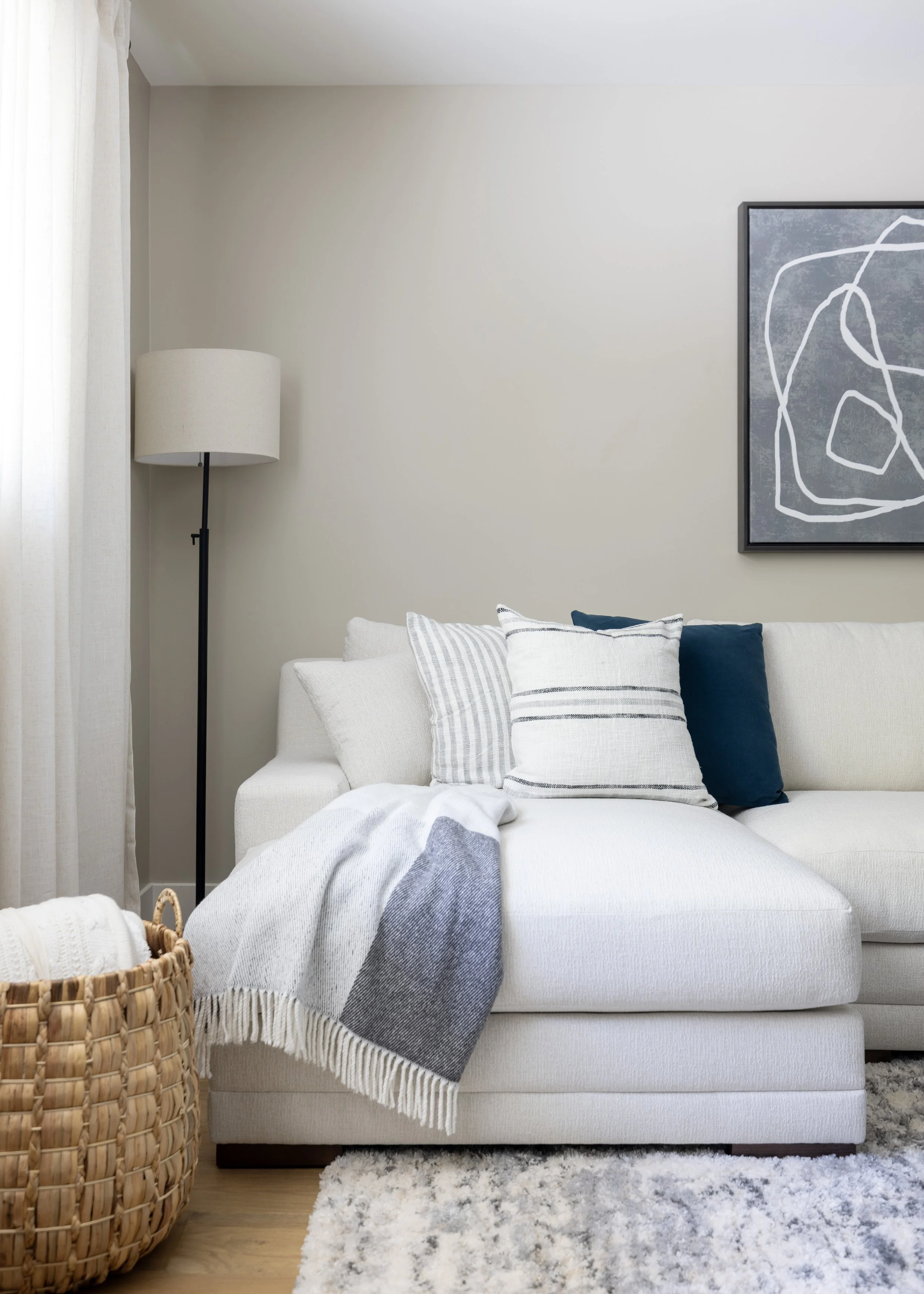 The sectional with chaise in a light ivory color made the room feel comfortable for relaxing and lounging.